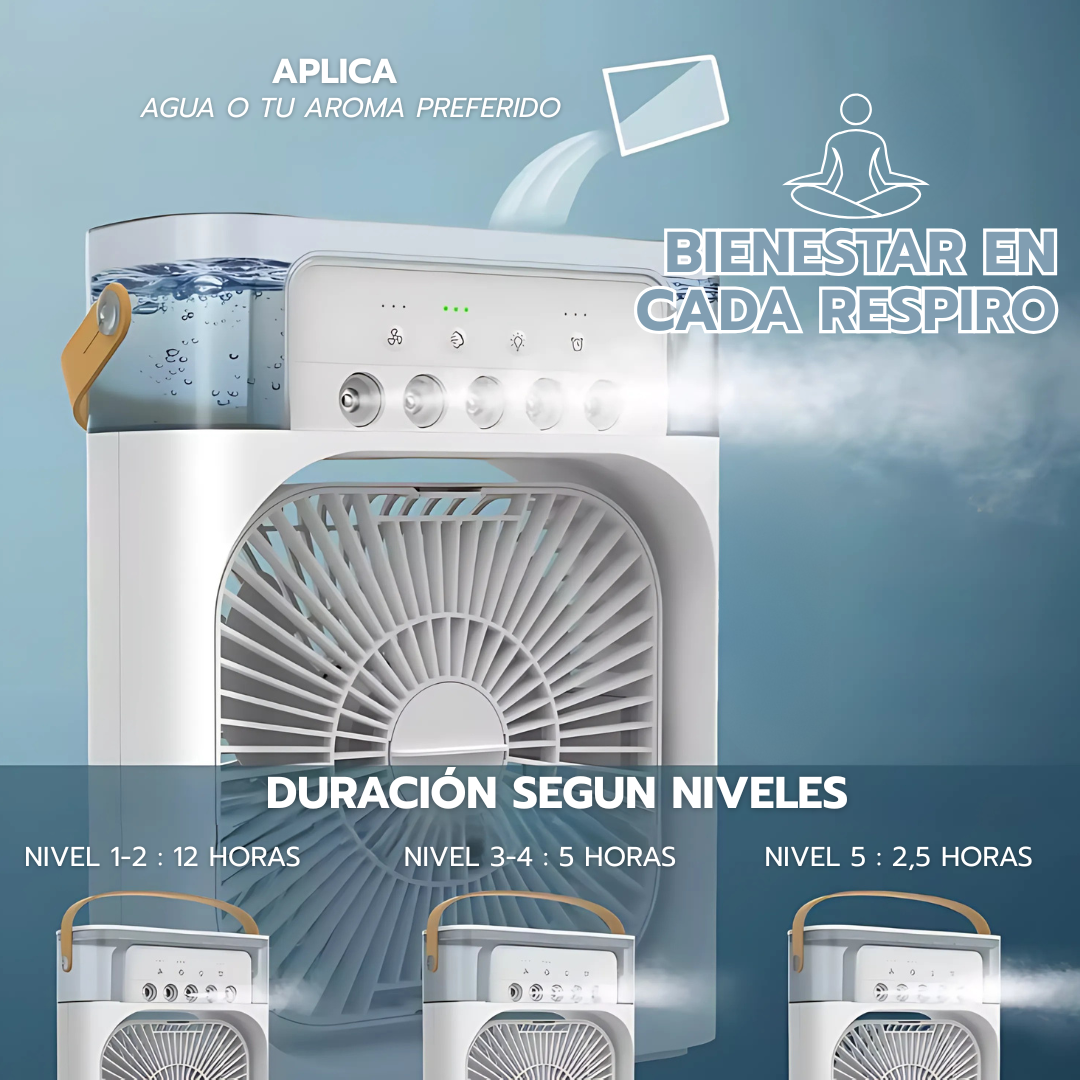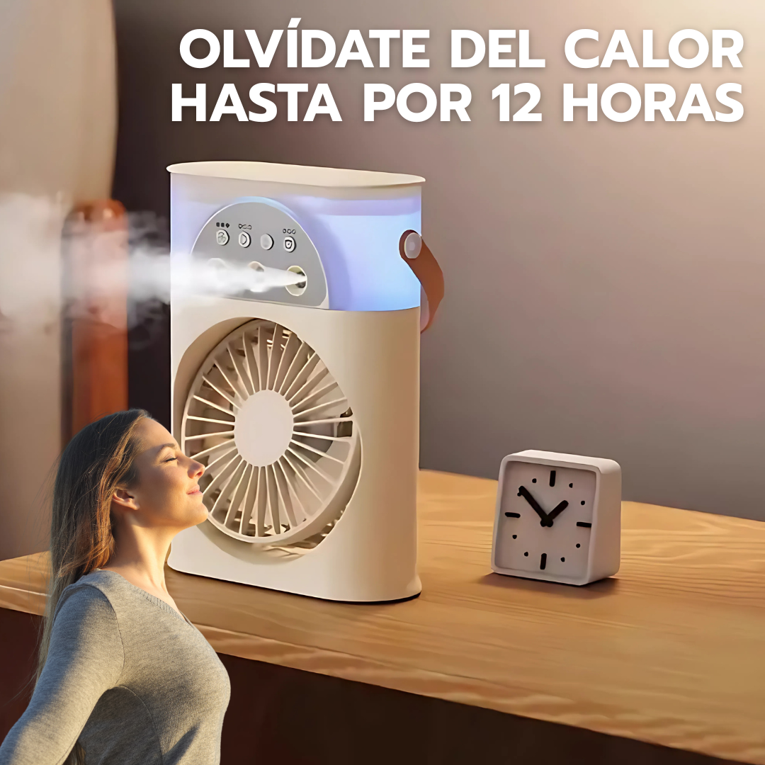 Disfruta hasta 12 horas seguidas de aire fresco y húmedo. Ideal para combatir el calor sin preocuparte por recargas constantes.