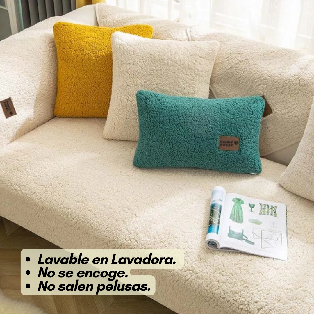 Su respaldo antideslizante mantiene la funda estable en el sofá evitando desastres y arrugas.
