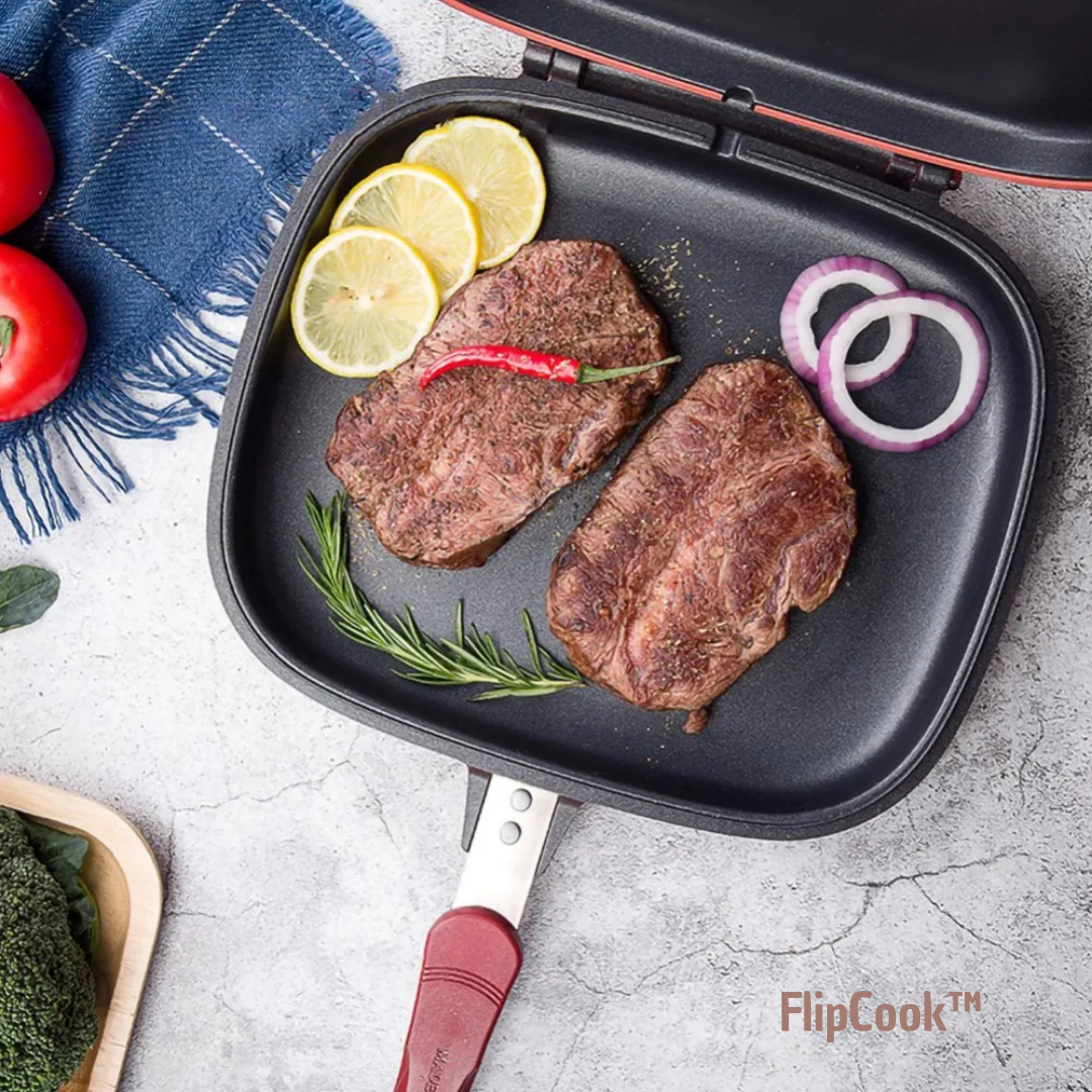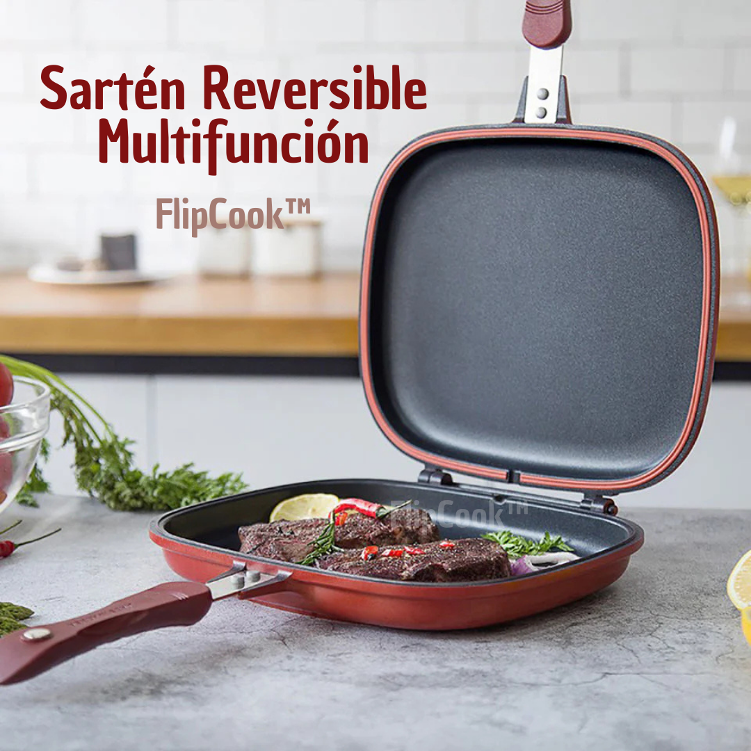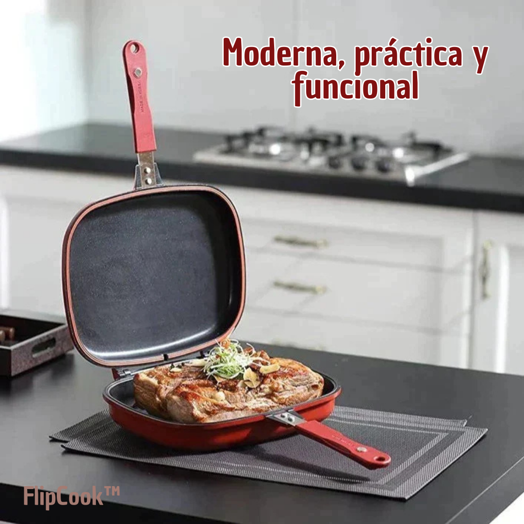 Con FlipCook™ eso quedó en el pasado. Gracias a su diseño reversible de doble cara y recubrimiento antiadherente premium, podrás preparar carnes, pescados, verduras y hasta tortillas en menos tiempo, con un dorado perfecto y sin que nada se pegue.